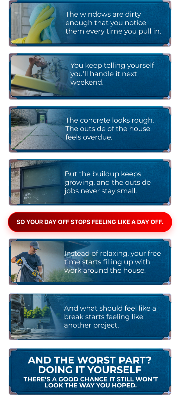Cleaner windows, better-looking concrete, less clutter, and a home that looks cared for again.